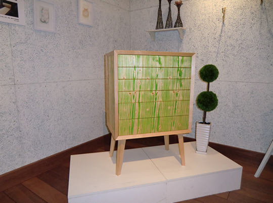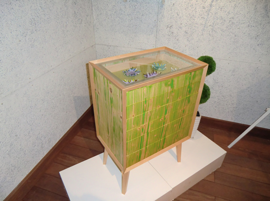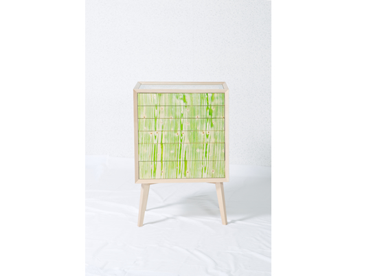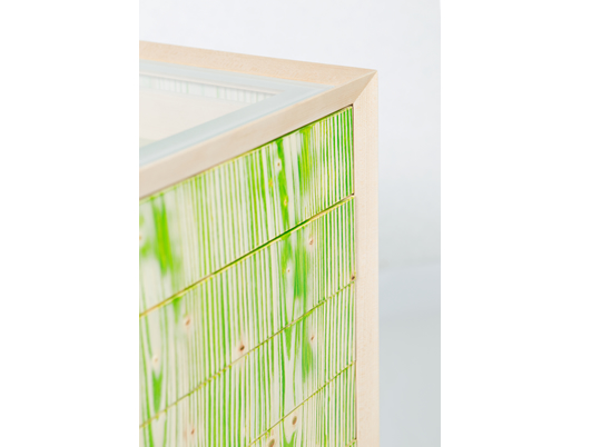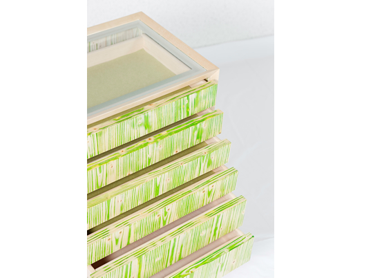 アクセサリーや小物、腕時計など、趣味を飾り収納できるキャビネットです。フレームのメープル材をシャープで繊細なトメ加工で仕上げることで、すっきりとしたデザインになっています。引き出しはプッシュオープンとなっております。トップのガラス天板から眺めるコレクションは絶景です。